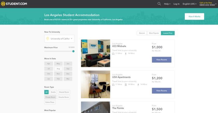 يمكنك البحث حسب نوع مكان الإقامة الذي تبحث عنه - مثل شقة كاملة، أو غرفة مشتركة، أو غرفة خاصة، أو استوديو أو غرفة بحمام داخلي – وترتيب النتائج حسب قربها من جامعتك. ويمكنك فرز النتائج وفقًا للسعر حسب الميزانية الخاصة بك. ببساطة أدخل المعايير الأكثر أهمية بالنسبة لك، ثم انتقل إلى الخيارات المختلفة المدرجة.